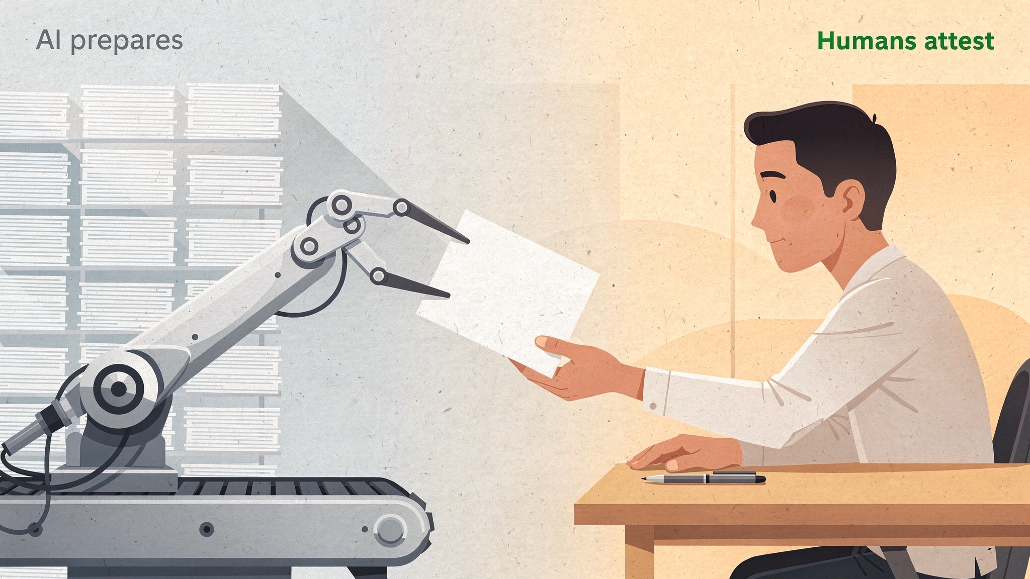 This is a structural guardrail, and there's no path through the system where an AI output becomes a compliance assertion without a human explicitly making it so.