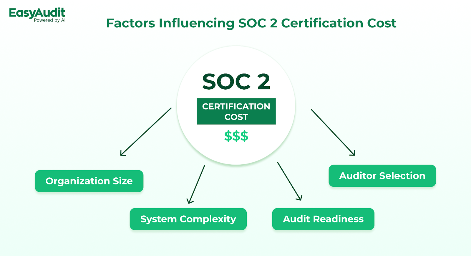 Several factors influence the total cost of achieving SOC 2 compliance: