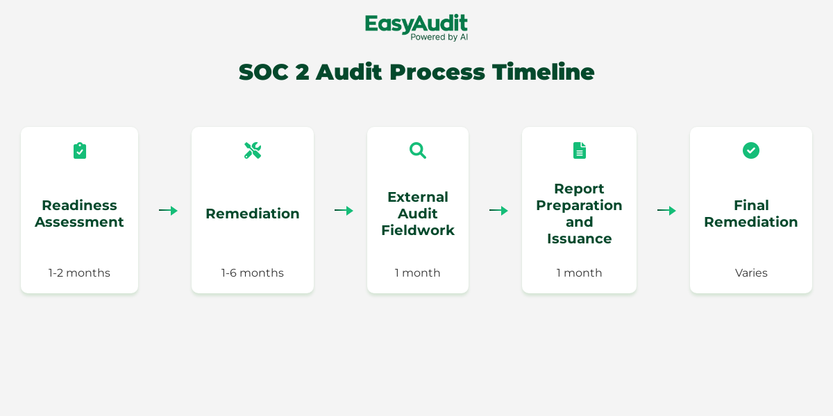 EasyAudit turns this daunting journey into a straightforward path, cutting your compliance preparation time from 8 months to just 2-3 months.