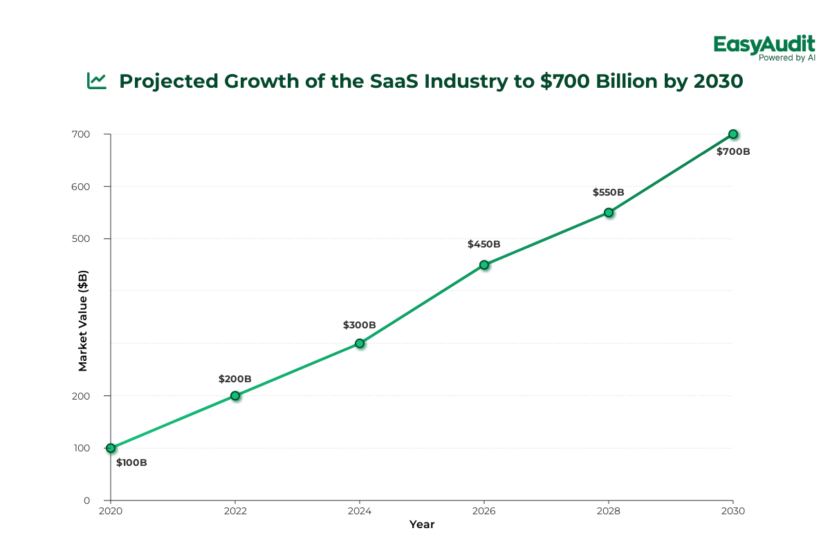 The SaaS industry is on a meteoric rise, projected to reach a market value of $700 billion by 2030.