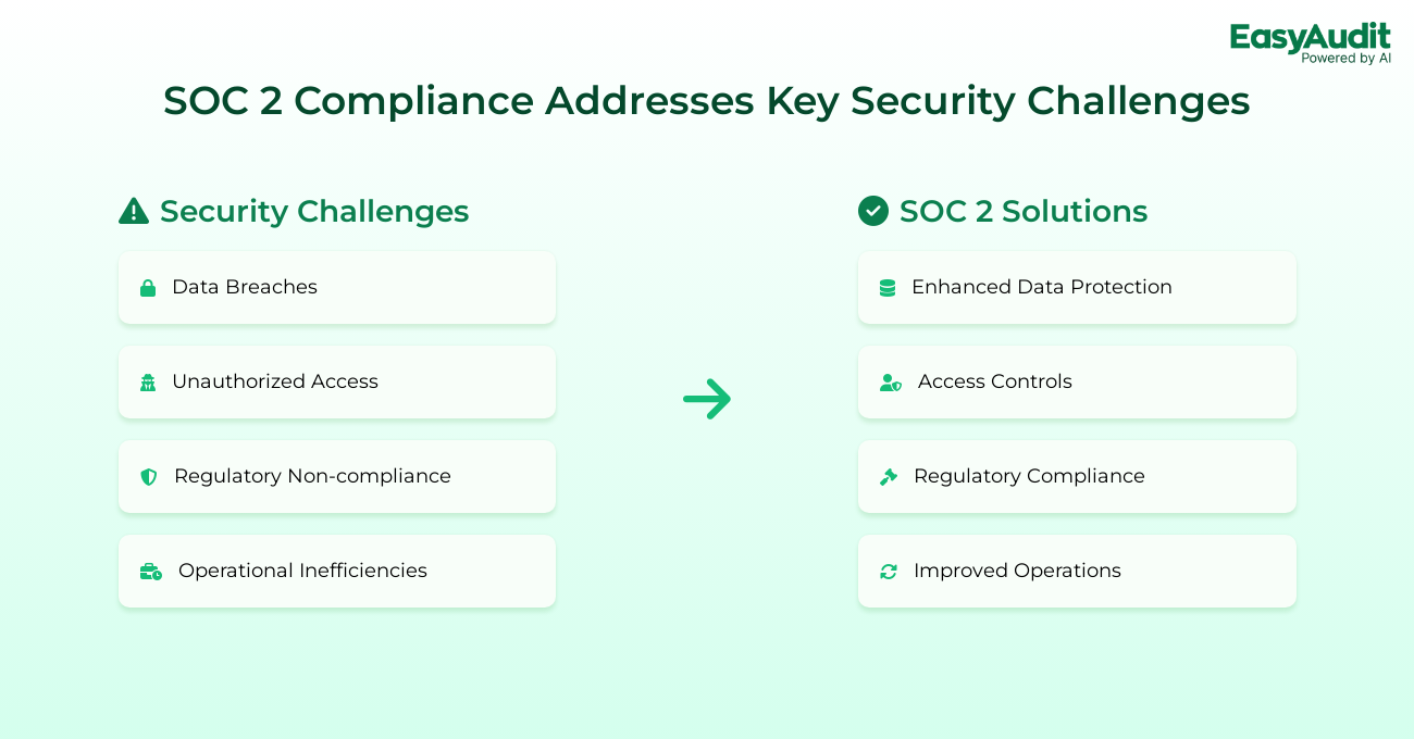 Regulatory Compliance: SOC 2 compliance ensures you meet current regulations and are better prepared for future changes, helping you avoid fines and legal issues.