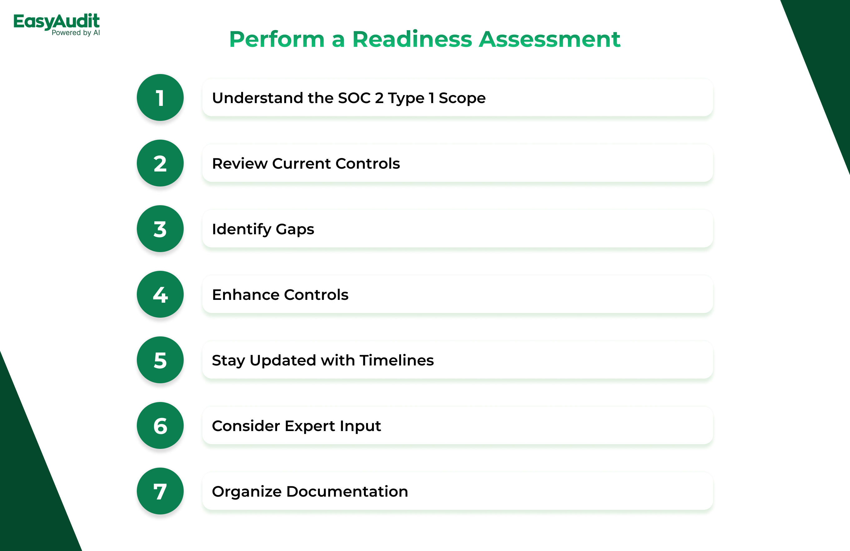 If you want the full step-by-step guide on conducting readiness assessments, check out our blog: SOC 2 Readiness Assessment: Are you Audit ready?