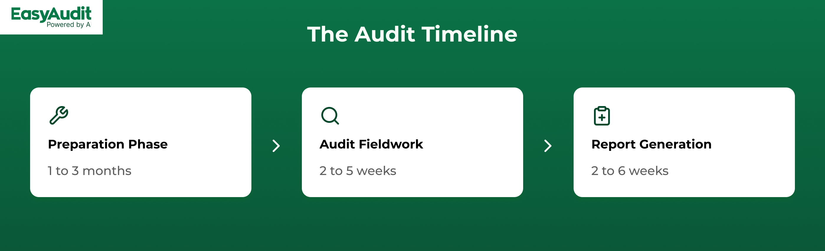 Audit Fieldwork (2 to 5 Weeks) The auditor examines your controls, gathers evidence, and tests effectiveness. This phase demands close collaboration and quick responses.