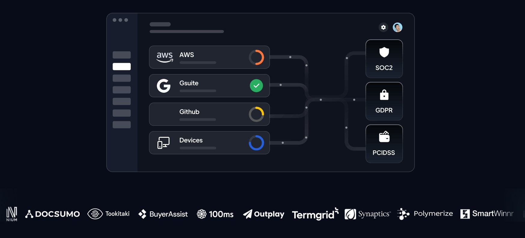 Supports frameworks like SOC 2, ISO 27001, HIPAA, GDPR, and PCI