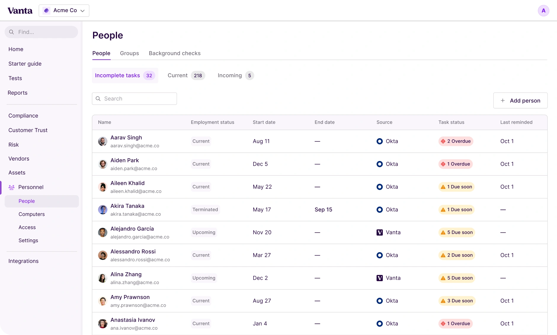 Vanta’s been around longer, and it shows, with over 300 integrations to tools like AWS, GitHub, and Okta. If you’re in a standard startup stack, you’ll feel right at home.